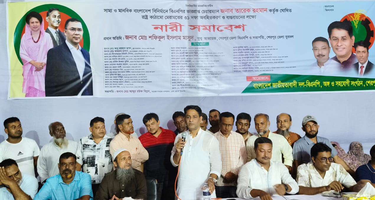 শেরপুরঃ শেরপুর জেলা বিএনপির যুগ্ম আহ্বায়ক মো. শফিকুল ইসলাম মাসুদ বলেছেন ‘মা-বোনেরাই বিএনপির শক্তি, ধানের শীষের শক্তি।’ তিনি বলেন,