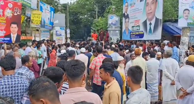 শেরপুরে আ:লীগ নেতা চন্দন পালের জামিনের প্রতিবাদে ডিসি গেইট অবরোধ করে ছাত্রজনতার বিক্ষোভ