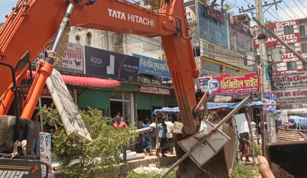 আশুলিয়ায় মহাসড়কের পাশে অবৈধ স্থাপনা উচ্ছেদ অভিযান