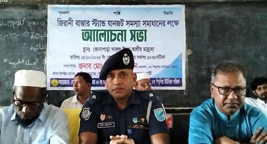 ঢাকাঃ আশুলিয়ার জিরানী বাজার স্ট্যান্ডে যানজট, মাদক ও সন্ত্রাসী কার্যক্রম নিরসনের লক্ষে সাংবাদিক, পুলিশ, রাজনৈতিক নেতৃবৃন্দ, শিক্ষক, ব্যবসায়ী, জনপ্রতিনিধি,