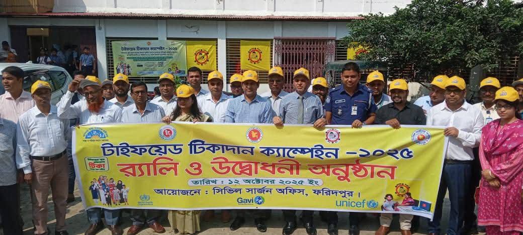 আজ থেকে ফরিদপুরে শুরু হয়েছে মাসব্যাপী টাইফয়েড টিকা দান ক্যাম্পেইন ২০২৫