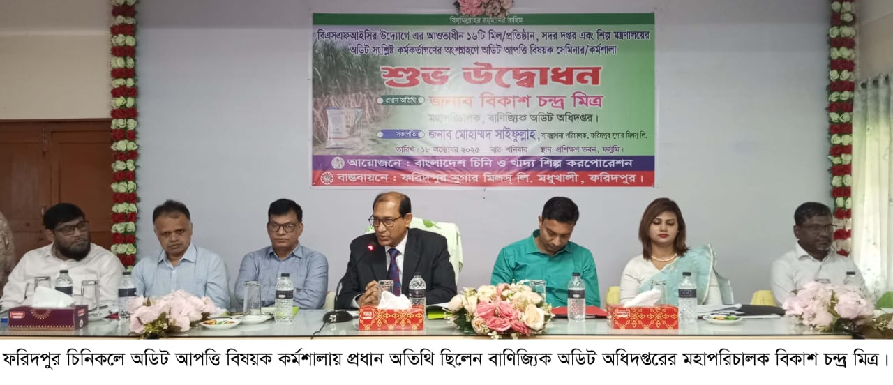 ফরিদপুরের মধুখালী চিনিকলে বাণিজ্যিক অডিট আপত্তি বিষয়ক কর্মশালা