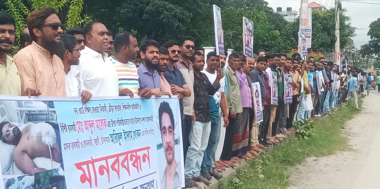 মানিকগঞ্জে শিক্ষানবিশ আইনজীবীর ওপর হামলাকারী খোকনের ফাঁসির দাবিতে মানববন্ধন