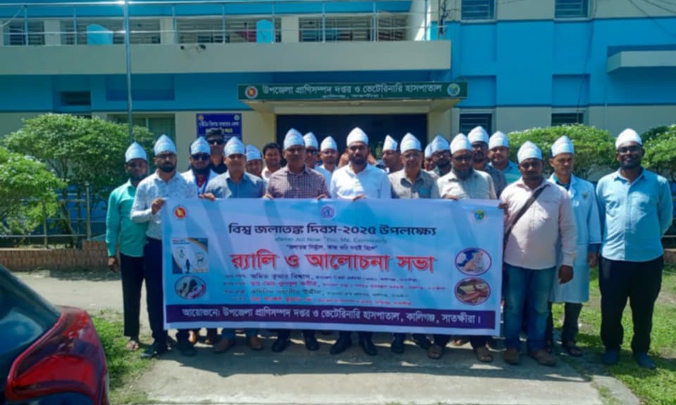 সাতক্ষীরাঃ জলাতঙ্ক নির্মূলে কাজ করি সবাই মিলে এ প্রতিপাদ্যকে সামনে রেখে সাতক্ষীরার কালিগঞ্জ উপজেলা প্রাণিসম্পদ দপ্তর ও ভেটেরিনারি হাসপাতালের উদ্যোগে