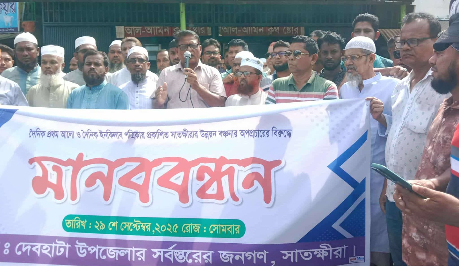 সাতক্ষীরাঃ সাতক্ষীরার দেবহাটায় দৈনিক প্রথম আলো ও দৈনিক ইনকিলাব পত্রিকায় সাতক্ষীরার উন্নয়ন নিয়ে প্রকাশিত বিভ্রান্তিকর ও ষড়যন্ত্র মূলক সংবাদের প্রতিবাদে
