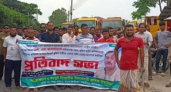 বাংলাদেশ ট্যাংকলরী শ্রমিক ফেডারেশনের উদ্যোগে আয়োজিত এ কর্মসূচিতে পার্বতীপুরের রংপুর বিভাগীয় ট্যাংকলরী শ্রমিক ইউনিয়নের সভাপতি আতাউর রহমান আতু, সাধারণ সম্পাদক আতাউর রহমানসহ অন্যান্য নেতা-কর্মীরা উপস্থিত থেকে প্রতিবাদে অংশগ্রহণ করেন।