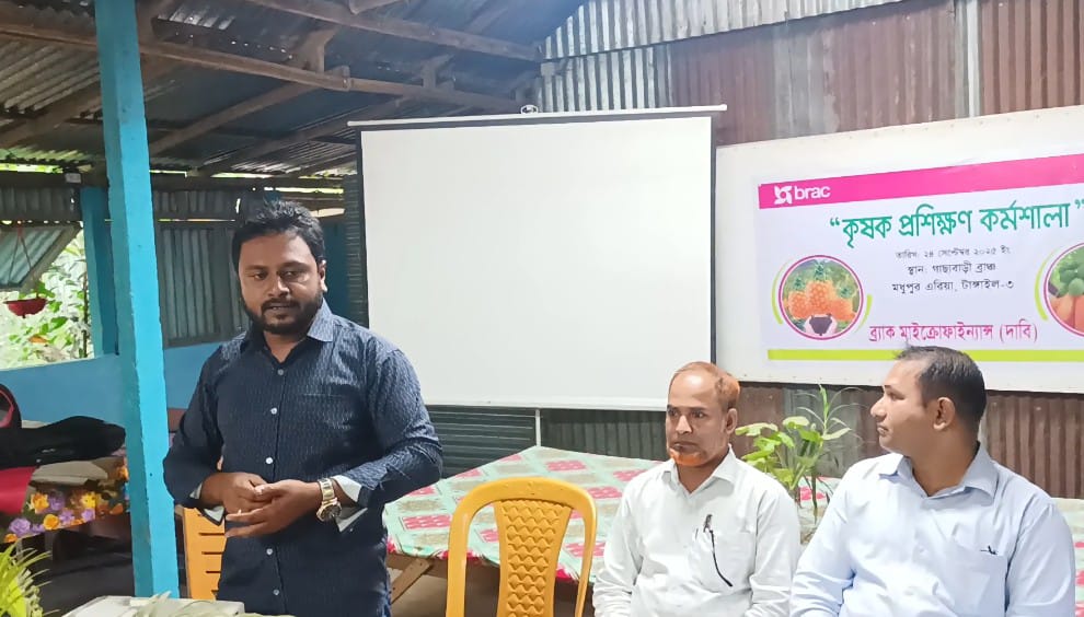 টাঙ্গাইলের মধুপুরে টাংগাইল -৩ রিজিয়নের ব্র্যাক মাইক্রোফাইন্যান্স (দাবি) কর্তৃক একটি মাঠ পর্যায়ে “কৃষক প্রশিক্ষণ কর্মশালা” এর আয়োজনে জলছত্র এলাকায় বুধবার (২৪ সেপ্টেম্বর) বিকেলে এ কর্মশালা অনুষ্ঠিত হয়েছে।