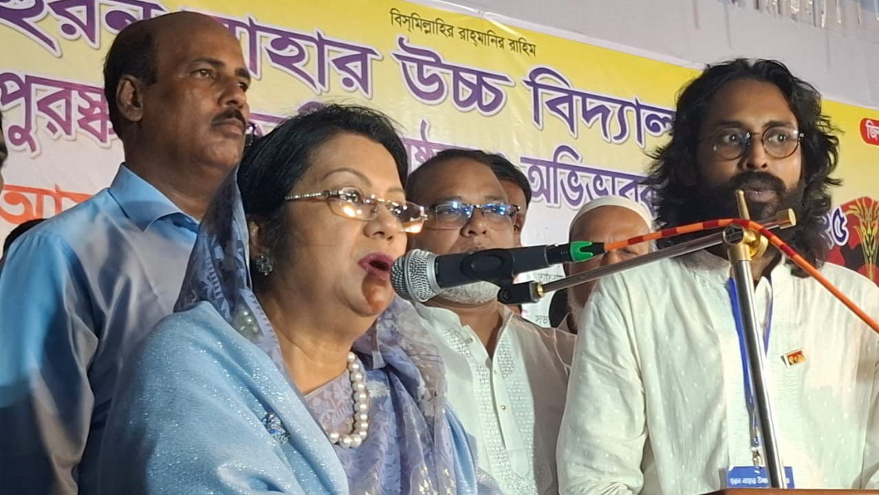 মঙ্গলবার (২১ অক্টোবর) বিকেলে মা হুরুণ নাহারের নামে প্রতিষ্ঠিত হরুন নাহার উচ্চ বিদ্যালয়ের বার্ষিক পুরস্কার বিতরণী ও অভিভাবক সমাবেশে প্রধান অতিথির বক্তব্যে তিনি একথা বলেন।আফরোজা খানম রিতা বলেন, আগামী নির্বাচনে সকলকে ঐক্যবদ্ধভাবে ধানের শীষকে বিজয়ী করার লক্ষ্যে কাজ করে যেতে হবে। ধানের শীষকে বিজয় করার জন্য আমরা সকলে ধর্ম বর্ণের ঊর্ধ্বে থেকে দ্বিধাদ্বন্দ্ব ভুলে একে অপরের বন্ধু হয়ে কাজ করে যাব। উদ্দেশ্য- ধানের শীষকে ক্ষমতায় এনে দেশে শান্তি প্রতিষ্ঠা করা।