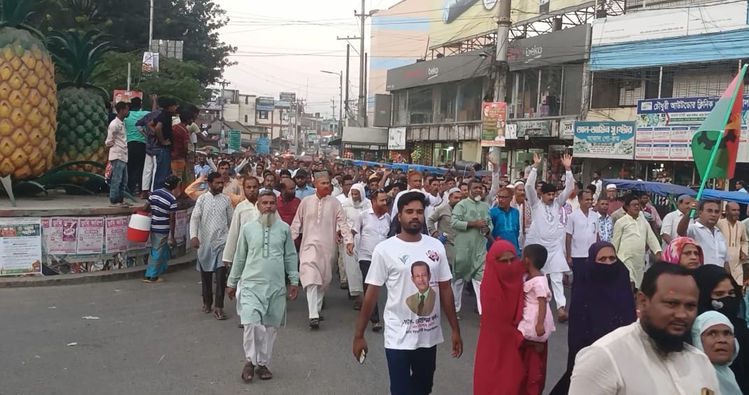পরে বিকেল ৫ টায় গণমিছিল বেড় হয়ে শহরের বিভিন্ন গুরুত্বপূর্ণ সড়ক প্রদক্ষিণ করেন।