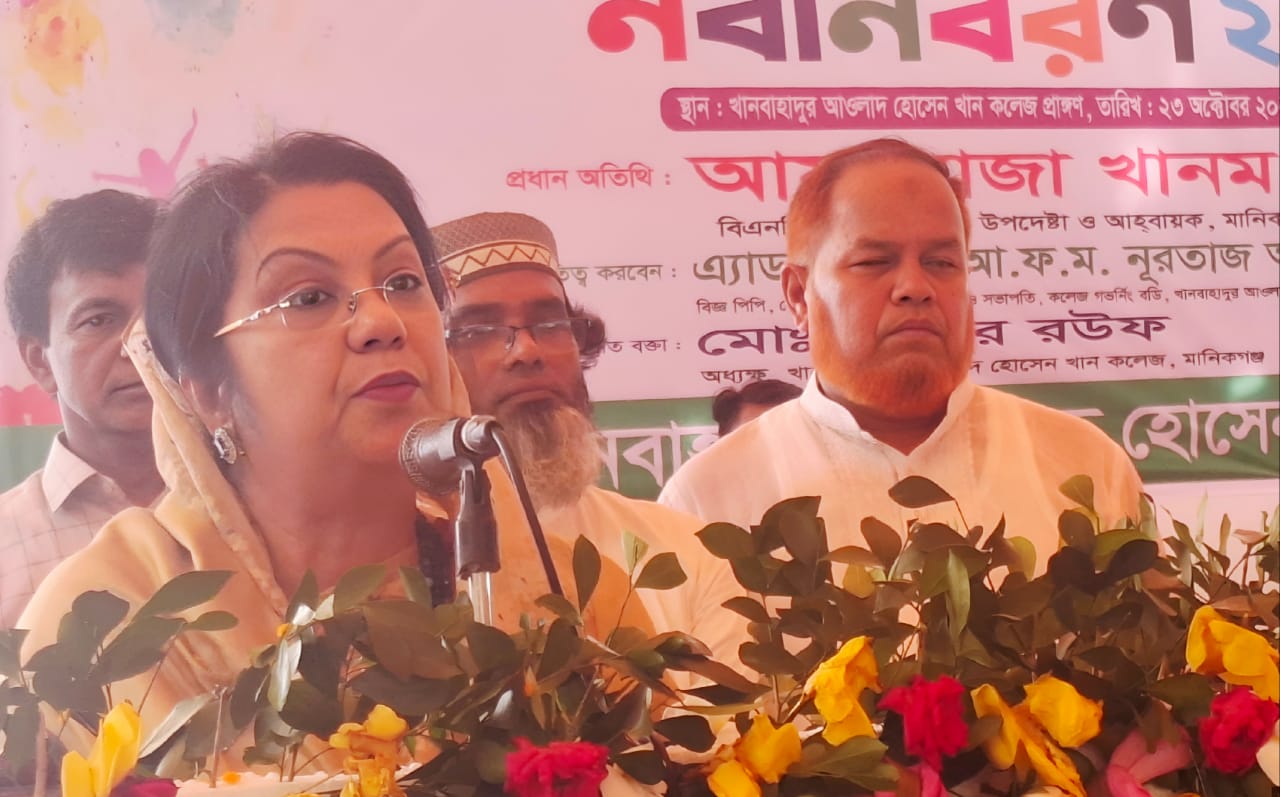 বৃহস্পতিবার (২৩ অক্টোবর) দুপুরে মানিকগঞ্জ শহরের খান বাহাদুর আওলাদ হোসেন খান কলেজের নবীনবরণ অনুষ্ঠানে প্রধান অতিথির বক্তব্যে তিনি এ কথা বলেন।